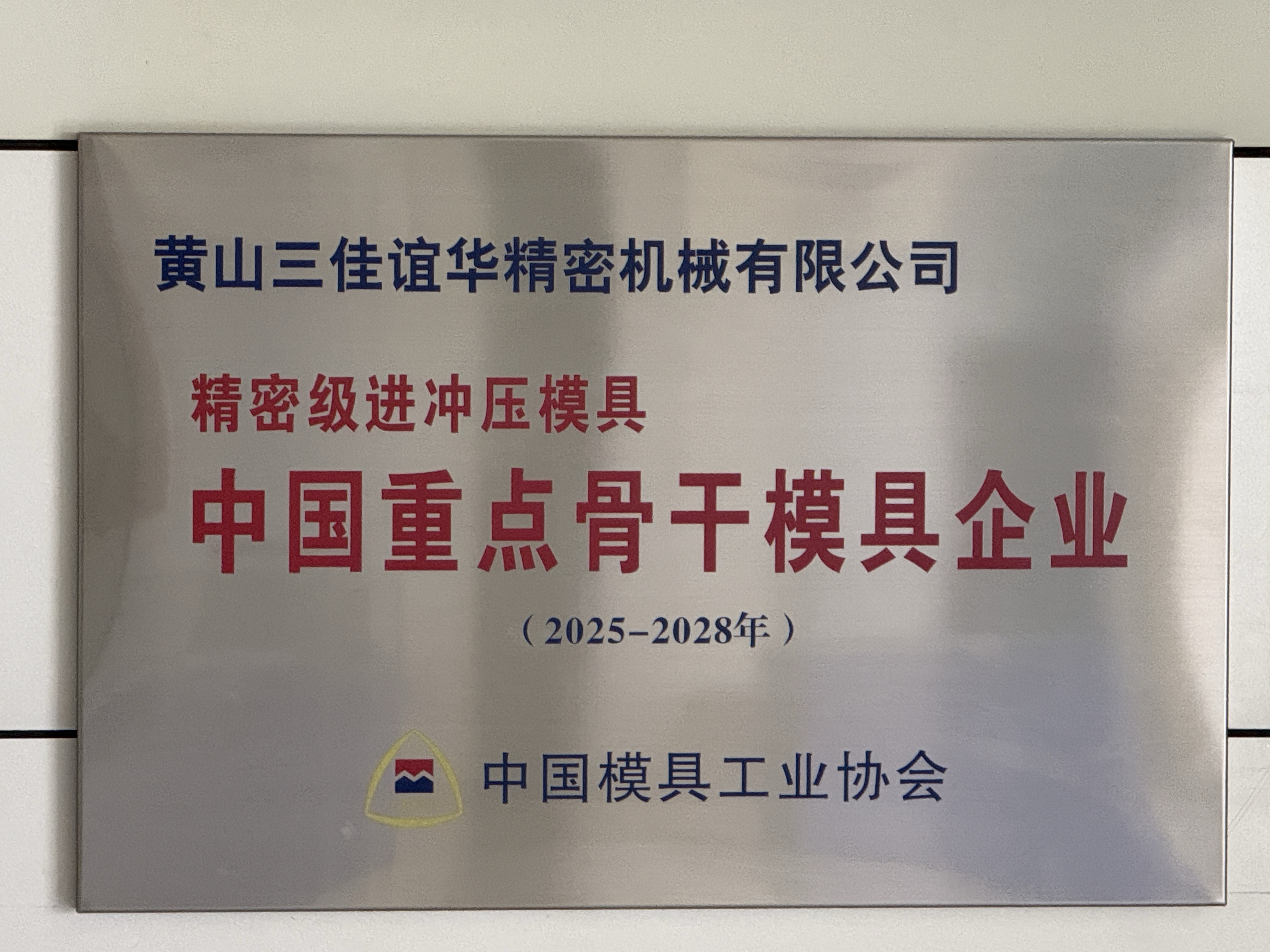 荣耀时刻,实至名归!在刚刚落幕的第二十四届中国国际模具技术和设备展览会(DMC2025)上,黄山三佳谊华精密机械有限公司(以下简称“黄山三佳谊华”)不仅以卓越的技术实力和创新的产品吸引了众多行业目光,更迎来了一项沉甸甸的荣誉——被中国模具工业协会授予“中国精密级进冲压模具重点骨干企业”称号!这份至高荣誉,是对黄山三佳谊华多年来深耕精密级进冲压模具领域,持续追求技术精进、品质卓越和市场领先地位的国家级权威认可!